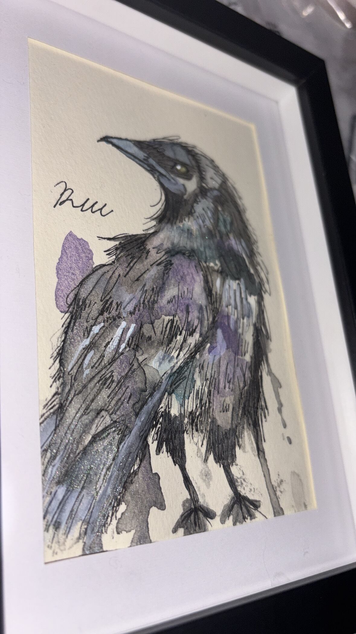 人に裏切られて信用が出来なくなった。もう一度誰かを信じてみたいけど怖い。そんなカラス。 同じ環境にいる人や惹かれた人の傍に置いておくときっと強い味方になってくれると思います。 ハガキサイズになります。 グリッター水彩を多めに使った作品になるのでこの値段になります。ご了承くださいm(_ _)m